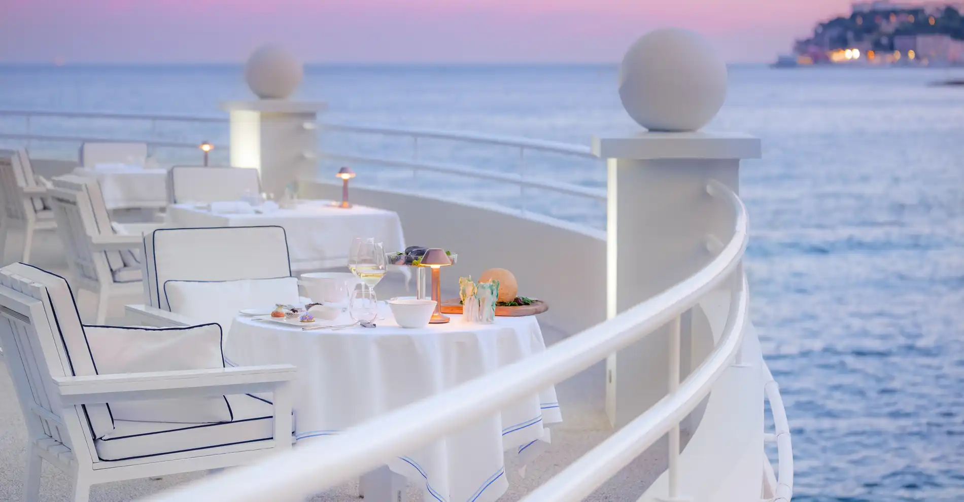 Per una serata più intima e altrettanto eccezionale, gli ospiti possono scegliere di cenare nella suite più esclusiva della struttura, con vista sul Palazzo dei Principi. Gustate i piatti più raffinati ammirando le luci di Monaco dalla vostra terrazza privata, una splendida definizione di lusso e serenità...